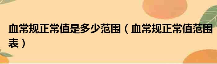 大家好,今天小六子来为大家解答以下的问题,关于血常规正常值是多少范围,血常规正常值范围表这个很多人还不知道,现在让我们一起来看看吧!
