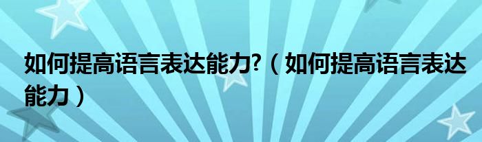 1、与其说你的语言表达能力差,倒不如说你是缺乏自信.你之所以在面对陌生人的时候无法正确完整地表达你所想向其表达的讯息,突然变得语无伦次起来,很大程度上是因为你担心出差错,害怕出丑.但是这很正常.如果你想在与陌生人交谈时能够很好地表达出自己的话语,首先需要做的就是树立你的自信心!!拥有较好的语言能力的人一定非常自信,你首先就需要培养自信.当然啦,在和陌生人说话的时候脸皮可以厚些,不要担心自己出错,别人一定不会介意.你想想:别人对我们自己说错话的时候我们也并不觉得怎样吧?所以,防开去说吧!!可以用寒暄来打开局面,进而更深地交谈.久而久之你就会惊奇地发现自己不再那么羞涩了!!这是帮助你克服与陌生人说话是胆怯的一些方法. 至于提高语言水平吧,我想你可以每天都照着镜子,看着自己,然后不拿着稿子对着自己发表演讲,就像电视上的那些演讲家那样,适当地运用一些肢体语言.此时因为没有人在一旁,所以你不会有心理负担,一段时间之后你就会不知不觉的得到提高了.你也可以经常模仿自己的老师讲课的样子,把自己所学习的知识对着镜子或者干脆对着空气讲,这样既能够锻炼口语,又能复习功课,岂不是一举两得?!多阅读,多跟不同类型的人打交道。