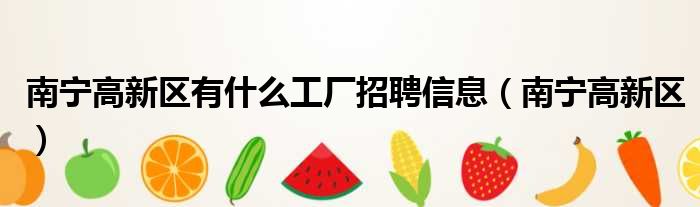 南宁高新区有什么工厂招聘信息(南宁高新区)