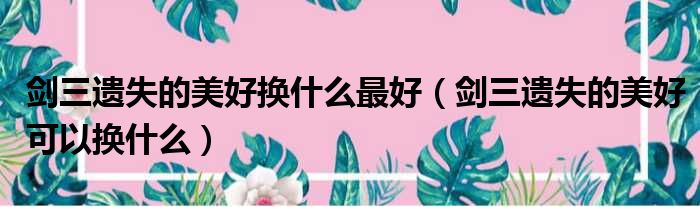 剑三遗失的美好换什么最好(剑三遗失的美好可以换什么)