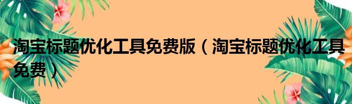淘宝标题优化工具免费版(淘宝标题优化工具免费)