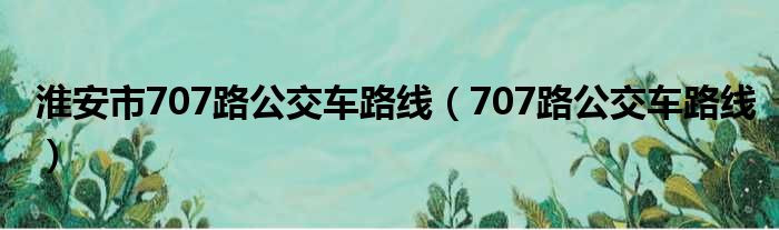 大家好,今天小六子来为大家解答以下的问题,关于淮安市707路公交车路线,707路公交车路线这个很多人还不知道,现在让我们一起来看看吧!