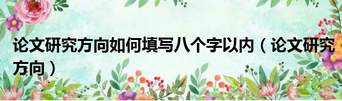 大家好,今天小六子来为大家解答以下的问题,关于论文研究方向如何填写八个字以内,论文研究方向这个很多人还不知道,现在让我们一起来看看吧!
