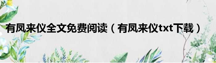 导读 大家好,今天小六子来为大家解答以下的问题,关于有凤来仪全文免费阅读,有凤来仪txt下载这个很多人还不知道,现在让我们一起来看看吧!1、