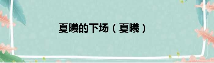 大家好,今天小六子来为大家解答以下的问题,关于夏曦的下场,夏曦这个很多人还不知道,现在让我们一起来看看吧!