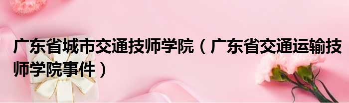 广东省城市交通技师学院(广东省交通运输技师学院事件)