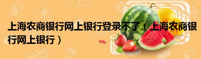 上海农商银行网上银行登录不了(上海农商银行网上银行)
