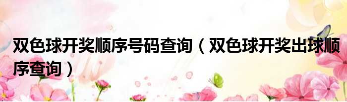 双色球开奖顺序号码查询(双色球开奖出球顺序查询)