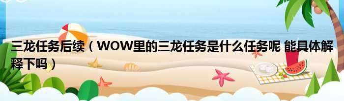 导读 大家好,今天小六子来为大家解答以下的问题,关于三龙任务后续,WOW里的三龙任务是什么任务呢 能具体解释下吗这个很多人还不知道,现在让我