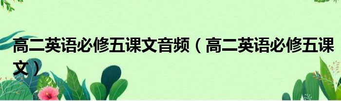 导读 大家好,今天小六子来为大家解答以下的问题,关于高二英语必修五课文音频,高二英语必修五课文这个很多人还不知道,现在让我们一起来看看吧