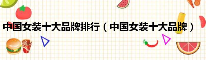1、1 Only女装 (十大女装品牌,世界品牌,丹麦名牌) 2 艾格Etam (十大女装品牌,法国ETAM集团,著名品牌) 3 太平鸟 (十大女装品牌,中国女装高知度品牌) 4 哥弟 (中国驰名商标,女装十大品牌,台湾名牌) 5 虫虫 (女装十大品牌,香港名牌,知名畅销品牌) 6 歌莉娅 (十大女装品牌,中国女装/秋装/夏装高知度品牌) 7 千百惠 (十大女装品牌,高知名度畅销品牌) 8 红袖Hopeshow (十大女装品牌,中国女装高知度品牌) 9 太和TAHAN (女装十大品牌,中国女装高知度品牌) 10 斯尔丽SIERLI (中国驰名商标,中国名牌,一线品牌/牌子,女装十大品牌)。