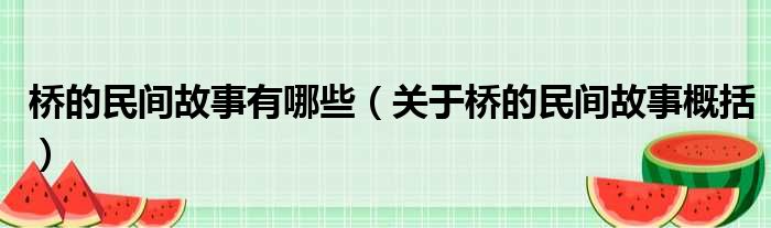桥的民间故事有哪些(关于桥的民间故事概括)