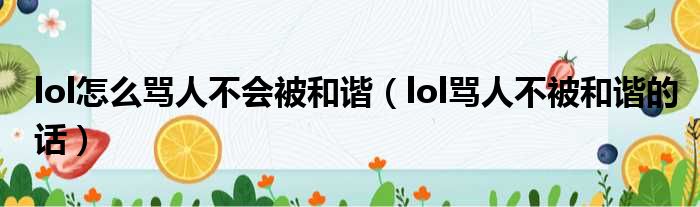 lol怎么骂人不会被和谐(lol骂人不被和谐的话)