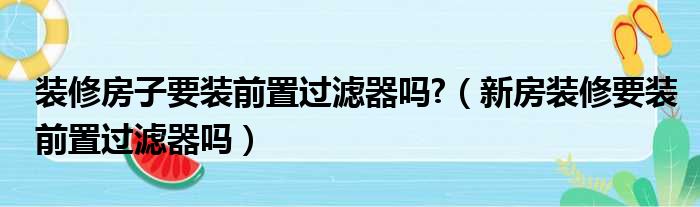 装修房子要装前置过滤器吗?(新房装修要装前置过滤器吗)