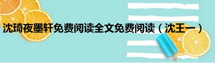 沈琦夜墨轩免费阅读全文免费阅读(沈王一)