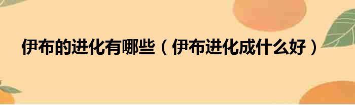 导读 大家好,今天小六子来为大家解答以下的问题,关于伊布的进化有哪些,伊布进化成什么好这个很多人还不知道,现在让我们一起来看看吧!1、伊布