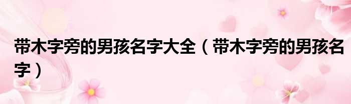 带木字旁的男孩名字大全(带木字旁的男孩名字)