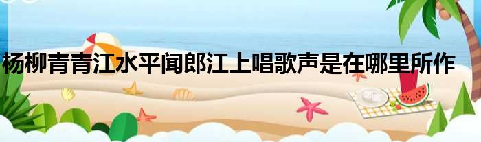 大家好,今天小六子来为大家解答以下的问题,关于杨柳青青江水平闻郎江上唱歌声是在哪里所作这个很多人还不知道,现在让我们一起来看看吧!