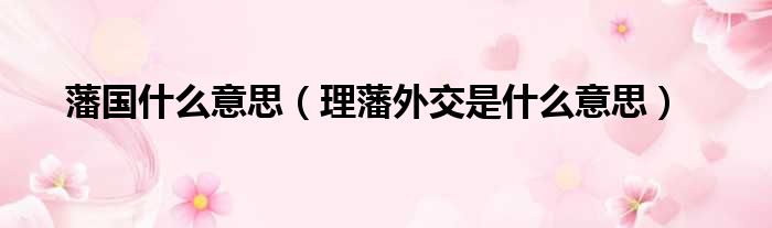 导读 大家好,今天小六子来为大家解答以下的问题,关于藩国什么意思,理藩外交是什么意思这个很多人还不知道,现在让我们一起来看看吧!1、“理藩