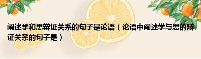 阐述学和思辩证关系的句子是论语(论语中阐述学与思的辩证关系的句子是)