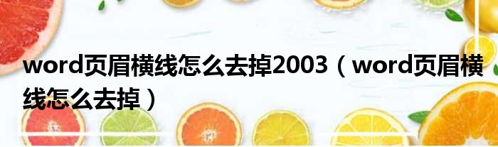 word页眉横线怎么去掉2003(word页眉横线怎么去掉)