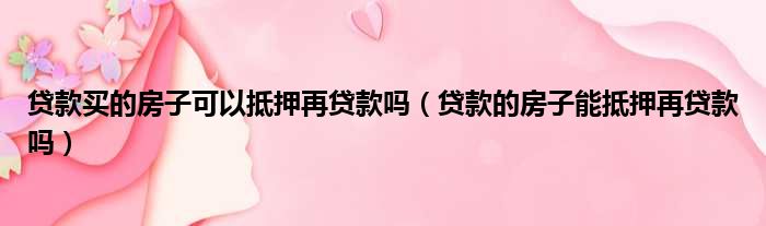 贷款买的房子可以抵押再贷款吗(贷款的房子能抵押再贷款吗)