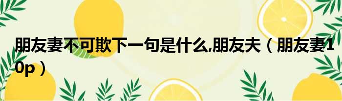 导读 大家好,今天小六子来为大家解答以下的问题,关于朋友妻不可欺下一句是什么,朋友夫,朋友妻10p这个很多人还不知道,现在让我们一起来看看吧