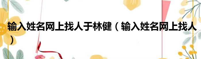 导读 大家好,今天小六子来为大家解答以下的问题,关于输入姓名网上找人于林健,输入姓名网上找人这个很多人还不知道,现在让我们一起来看看吧!1