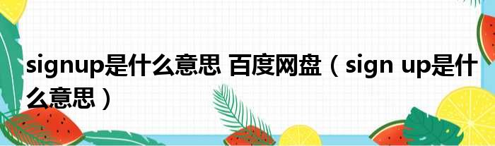 导读 大家好,今天小六子来为大家解答以下的问题,关于signup是什么意思 百度网盘,sign up是什么意思这个很多人还不知道,现在让我们一起来看
