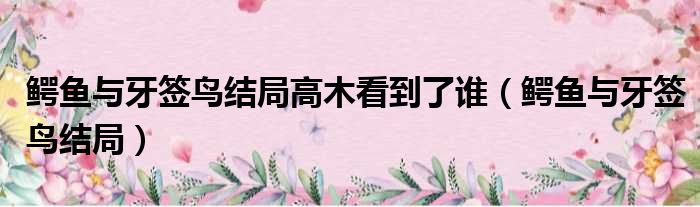 导读 大家好,今天小六子来为大家解答以下的问题,关于鳄鱼与牙签鸟结局高木看到了谁,鳄鱼与牙签鸟结局这个很多人还不知道,现在让我们一起来看