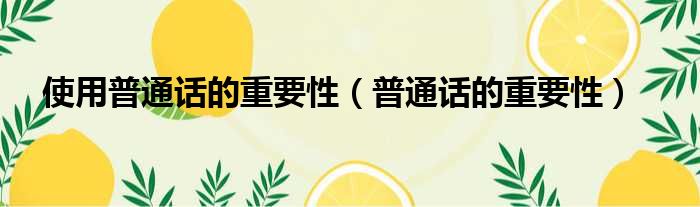 大家好,今天小六子来为大家解答以下的问题,关于使用普通话的重要性,普通话的重要性这个很多人还不知道,现在让我们一起来看看吧!