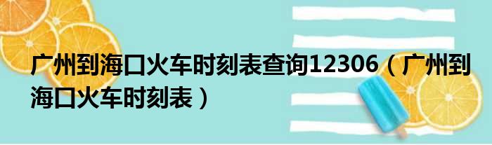 广州到海口火车时刻表查询12306(广州到海口火车时刻表)