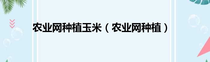 大家好,今天小六子来为大家解答以下的问题,关于农业网种植玉米,农业网种植这个很多人还不知道,现在让我们一起来看看吧!