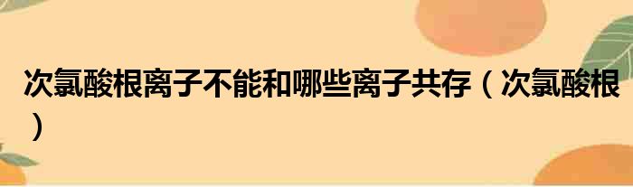 导读 大家好,今天小六子来为大家解答以下的问题,关于次氯酸根离子不能和哪些离子共存,次氯酸根这个很多人还不知道,现在让我们一起来看看吧!1