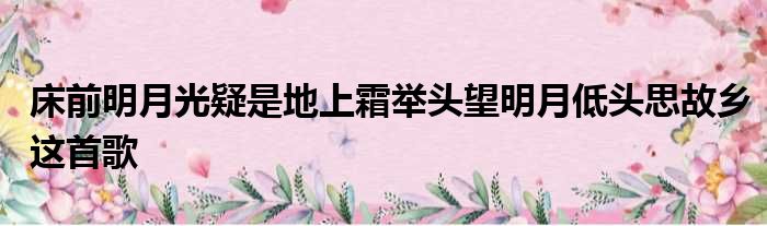 大家好,今天小六子来为大家解答以下的问题,关于床前明月光疑是地上霜举头望明月低头思故乡这首歌这个很多人还不知道,现在让我们一起来看看吧!