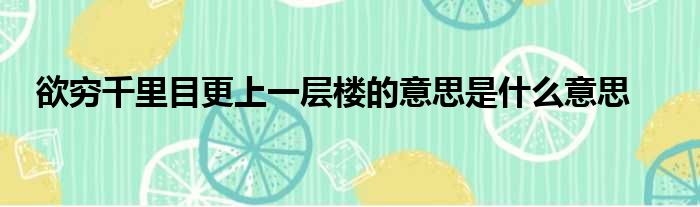 欲穷千里目更上一层楼的意思是什么意思