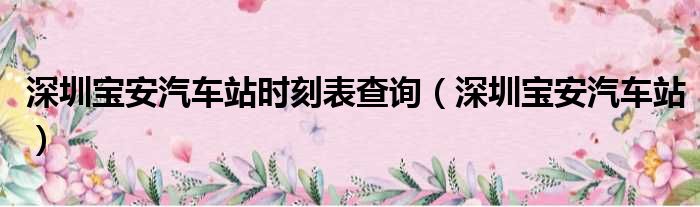 深圳宝安汽车站时刻表查询(深圳宝安汽车站)