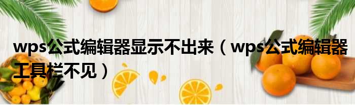 导读 大家好,今天小六子来为大家解答以下的问题,关于wps公式编辑器显示不出来,wps公式编辑器工具栏不见这个很多人还不知道,现在让我们一起来