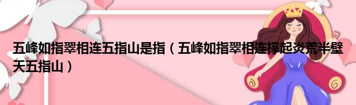 导读 大家好,今天小六子来为大家解答以下的问题,关于五峰如指翠相连五指山是指,五峰如指翠相连撑起炎荒半壁天五指山这个很多人还不知道,现在