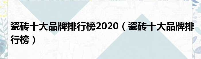瓷砖十大品牌排行榜2020(瓷砖十大品牌排行榜)