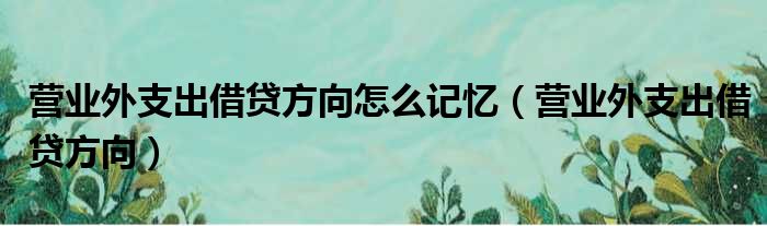 营业外支出借贷方向怎么记忆(营业外支出借贷方向)