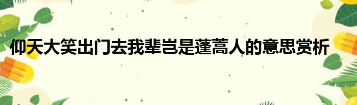 导读 大家好,今天小六子来为大家解答以下的问题,关于仰天大笑出门去我辈岂是蓬蒿人的意思赏析这个很多人还不知道,现在让我们一起来看看吧!1、