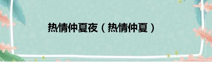 大家好,今天小六子来为大家解答以下的问题,关于热情仲夏夜,热情仲夏这个很多人还不知道,现在让我们一起来看看吧!