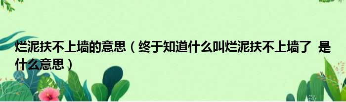 烂泥扶不上墙的意思(终于知道什么叫烂泥扶不上墙了 是什么意思)