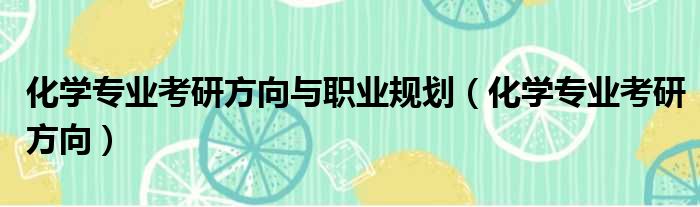 化学专业考研方向与职业规划(化学专业考研方向)