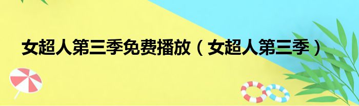 大家好,今天小六子来为大家解答以下的问题,关于女超人第三季免费播放,女超人第三季这个很多人还不知道,现在让我们一起来看看吧!