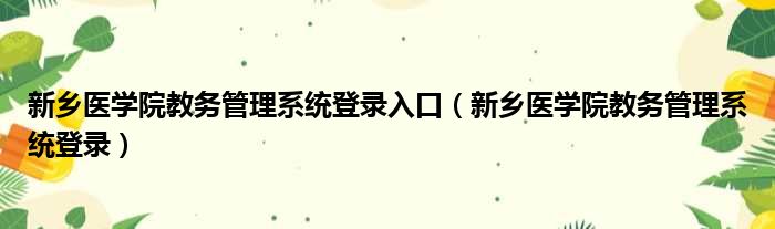 新乡医学院教务管理系统登录入口(新乡医学院教务管理系统登录)