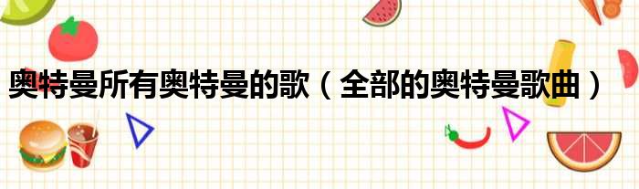 1、展开3全部 全部的奥特曼歌曲:初代奥特曼:OP:ウルトラマンの歌(奥特曼之歌); 赛文奥特曼:ウルトラセブンの歌(赛文·奥特曼之歌) ;杰克奥特曼:帰ってきたウルトラマン(归来的奥特曼) ;艾斯奥特曼:ウルトラマン エース (艾斯奥特曼之歌)和TAC队歌 ;雷欧奥特曼:ウルトラマン レオ (雷欧·奥特曼之歌)和戦え! ウルトラマンレオ (战斗!雷欧·奥特曼)迪迦奥特曼:奇迹再现;戴拿:戴拿奥特曼。