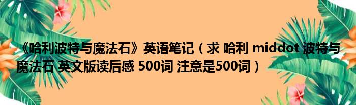 《哈利波特与魔法石》英语笔记(求 哈利 middot 波特与魔法石 英文版读后感 500词 注意是500词)
