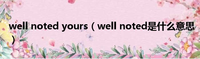 导读 大家好,今天小六子来为大家解答以下的问题,关于well noted yours,well noted是什么意思这个很多人还不知道,现在让我们一起来看看吧!